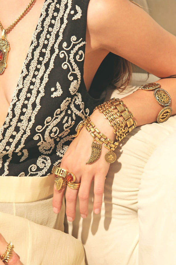 These exquisite statement pieces finished in 18k Gold and Antique Silver are one of a kind.